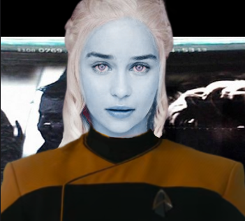 Physical Description | Standing slightly below average height for either an Andorian or a Human, Cassandra keeps herself physically fit through a daily fitness routine she picked up from a classmate at the Academy. Cassandra has fairly length white hair that hangs down to the middle of her back while untied. To keep it out of her way while on duty, she tends to either tie it back into a ponytail or if she’s got more time, tied it into braids for a little more flare. Being only half Andorian, Cassandra doesn’t have the antenna her people are known for and her skin is a more pale blue then what if common for Andorians. |